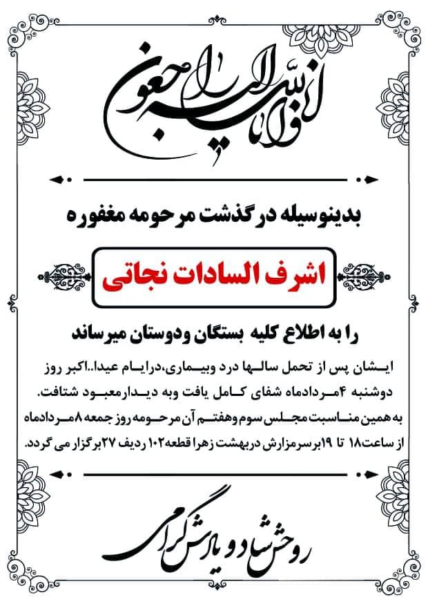 متمنی است برای آمرزش و شادی روح آن ساکن دیار ابدی، سوره های مبارکه ی حمد و توحید را قرائت فرمایید .