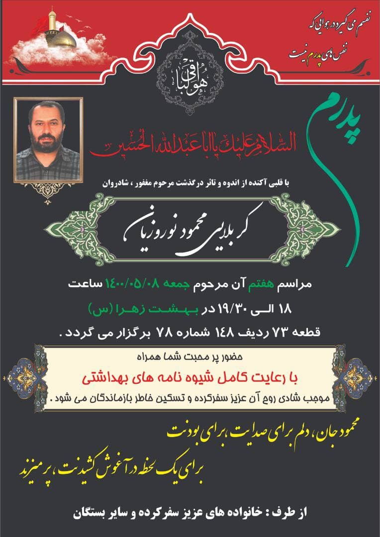 اطلاعیه ی برگزاری مراسم بزرگداشت زنده یاد کربلایی محمود نوروزیان