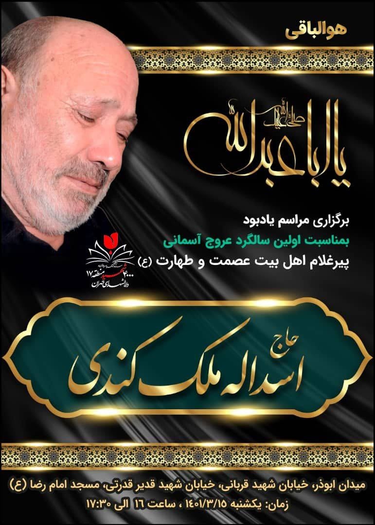 پوستر: برگزاری مراسم سالگرد درگذشت ابوالشهید مرحوم اسدالله ملک کندی