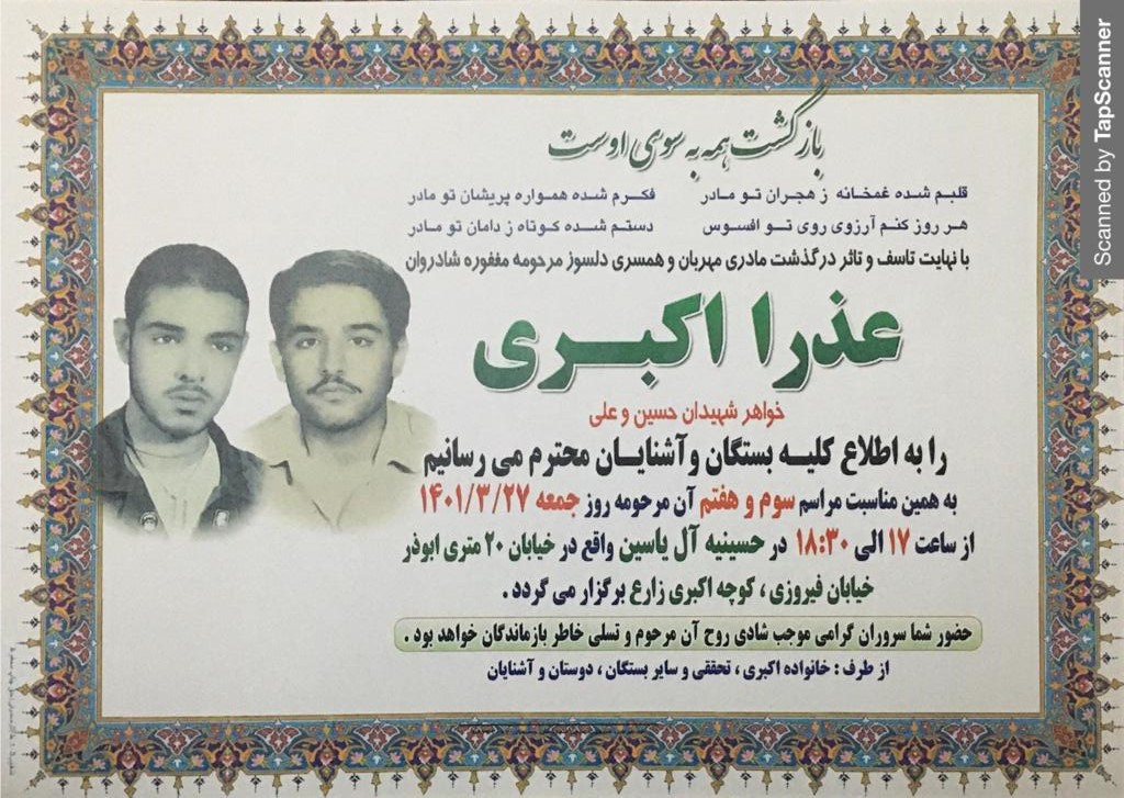 برگزاری مراسم بزرگداشت درگذشت همشیره ی مکرمه ی شهیدان والامقام اکبری