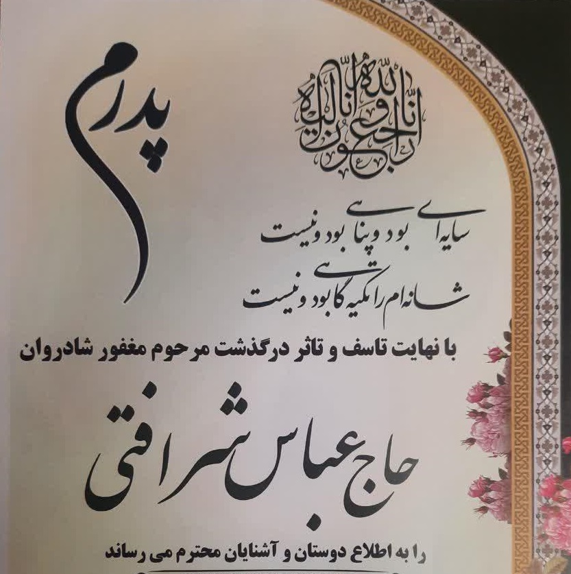 اطلاعیه ی درگذشت و تسلیت حاج عباس شرافتی دعوت حق را لبیک گفت
