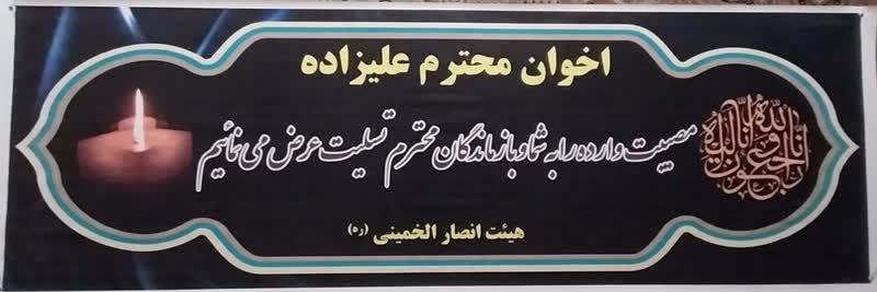 بنر تسلیت هیئت انصارالخمینی (ره) به اخوان سوگوار علیزاده