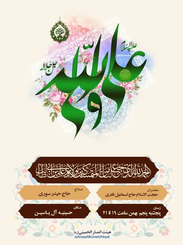 اطلاعیه: برگزاری مراسم جشن میلاد مولی الموحدین حضرت علی (ع) در هیئت انصارالخمینی (ره)