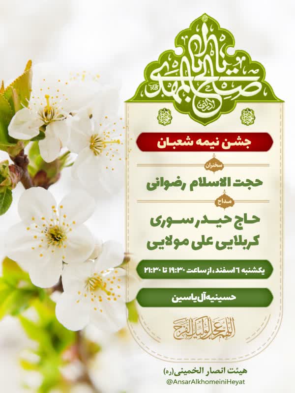 اطلاعیه: برگزاری مراسم جشن سالگرد ولادت حضرت بقیه الله الاعظم (عجل الله تعالی فرجه) در هیئت انصارالخمینی (ره)