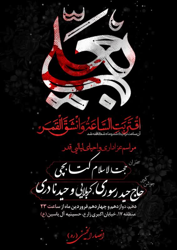 اطلاعیه: برگزاری مراسم احیاء لیالی قدر در هیئت انصارالخمینی (ره)